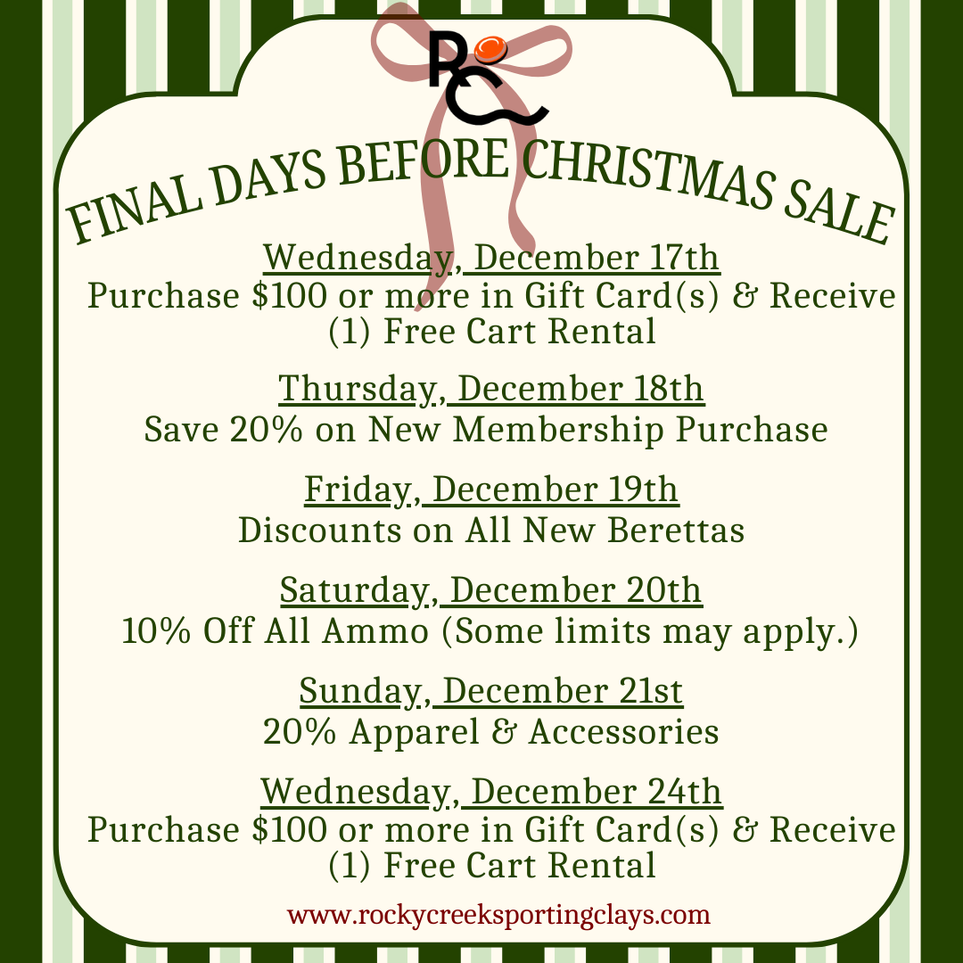 Rocky Creek caters to all shooters and their skill levels. From the guest who has never held a gun before, to the tournament shooter that shoots thousands of shells a year, we welcome you to Rocky Creek Sporting Clays!